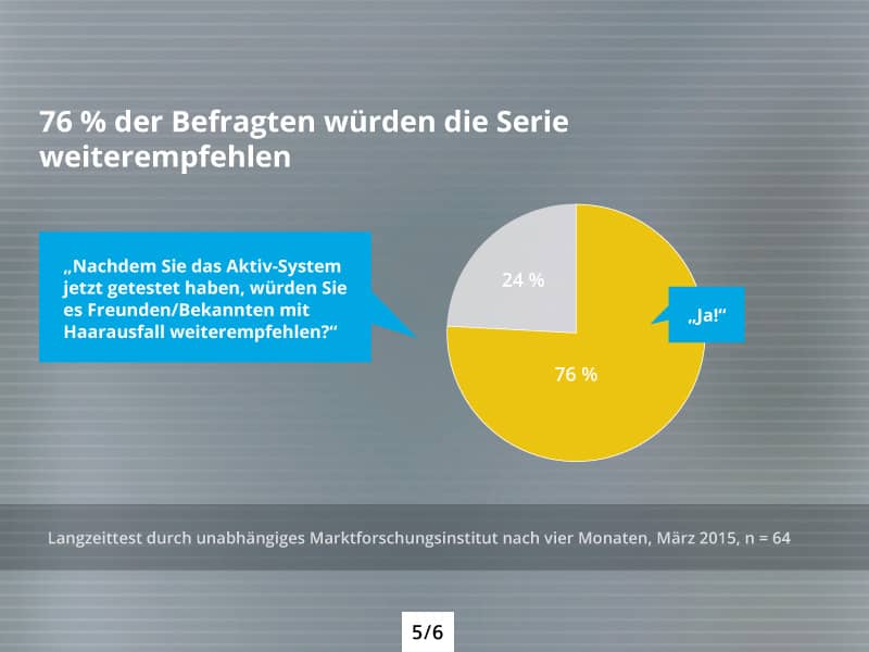 Von Oktober 2014 bis April 2015 wurde (in Zusammenarbeit mit Ayton Global Research) eine Studie mit 67 Testpersonen (44 Männer und 23 Frauen) im Alter von 18 bis 59 Jahren durchgeführt, um zu erfahren, wie gut das Crisan Aktiv-System bei erblich bedingtem Haarausfall wirkt.